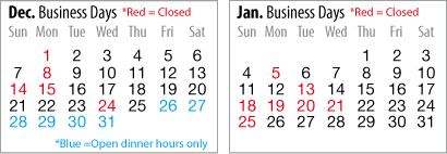 Period: Dec 26 – Jan 4 (*Lunch closed Dec 26–31)